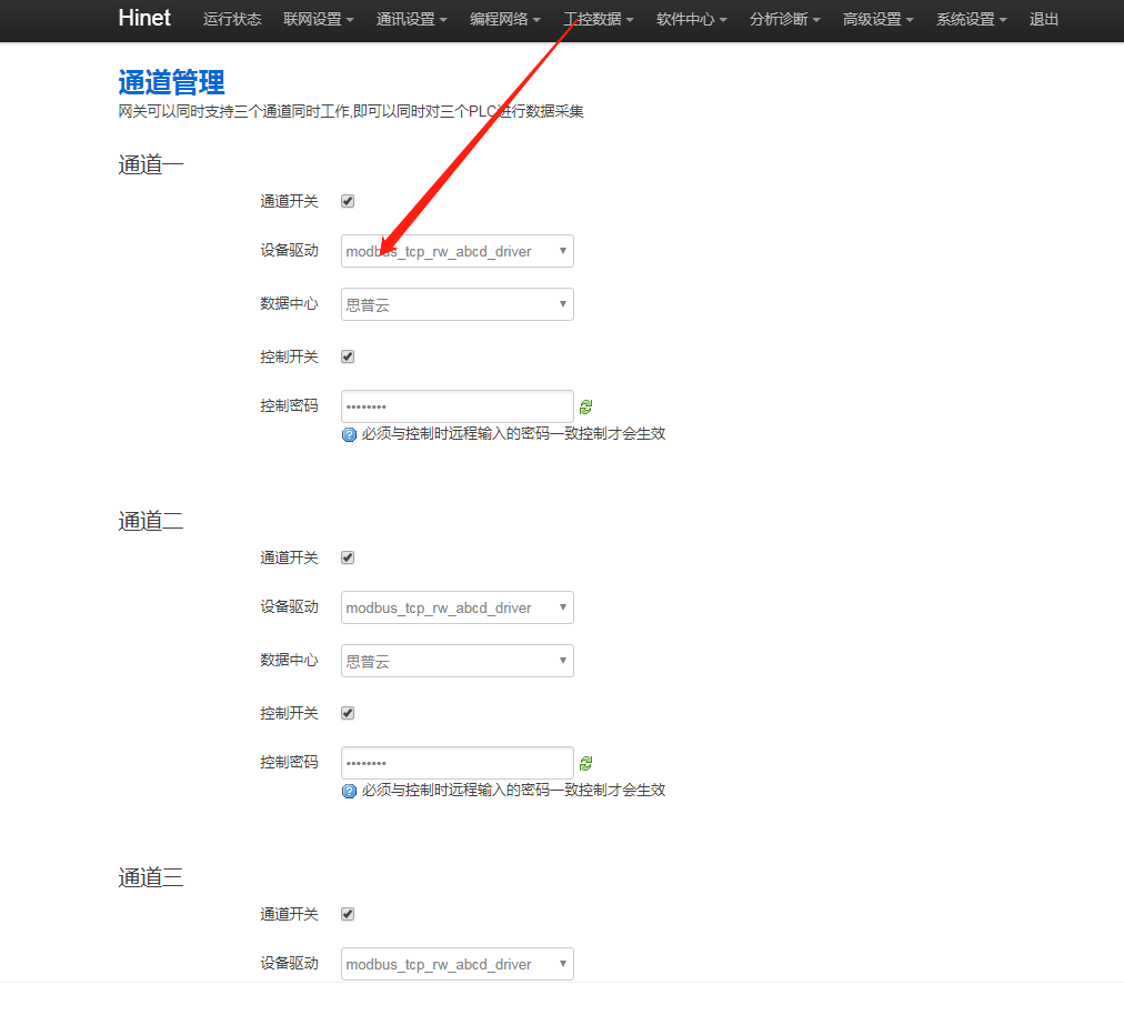 1. 点表协议与网关后台的驱动协议不一致,以思普云平台采集数据为例,思普云平台的产品管理处查看产品的协议名称。进网关后台“工控数据 - 通道管理”处查看设备驱动。点表协议必须与网关后台驱动协议一致。