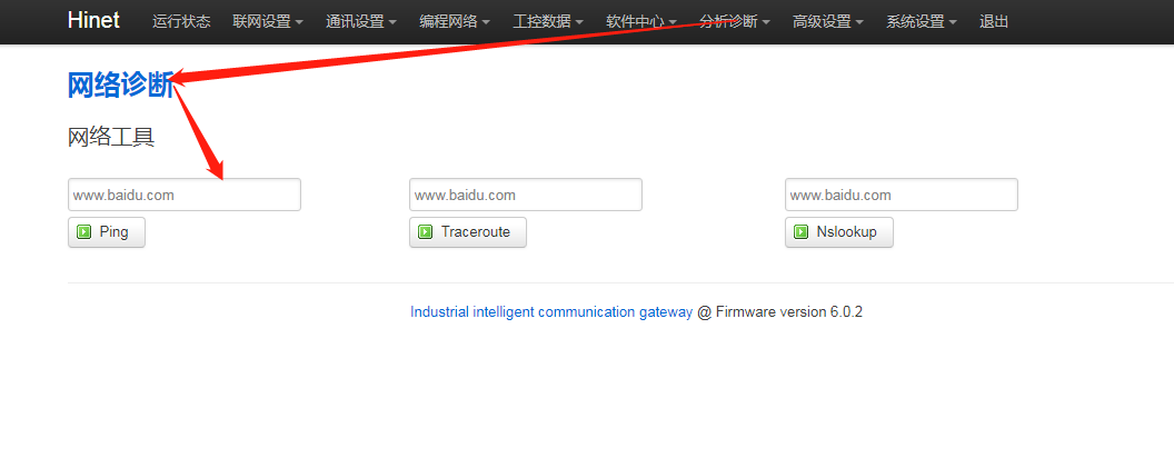 2. 有线网络是否不稳定,进网关后台,点击“分析诊断 - 网络诊断”,ping百度,如果能ping通,则点击“联网设置 - 联网监控” ,将包大小1改为56,再点击【保存应用】”,最后重启网关。
